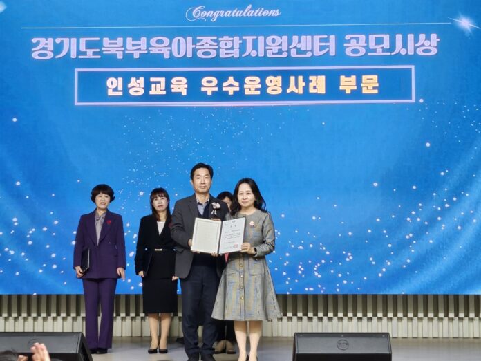 수원시육아종합지원센터가 11월 29일 경기도청 북부청사 평화누리홀에서 열린 ‘2024년 인성교육 우수운영사례 공모전’ 시상식에서 우수상을 받았습니다.