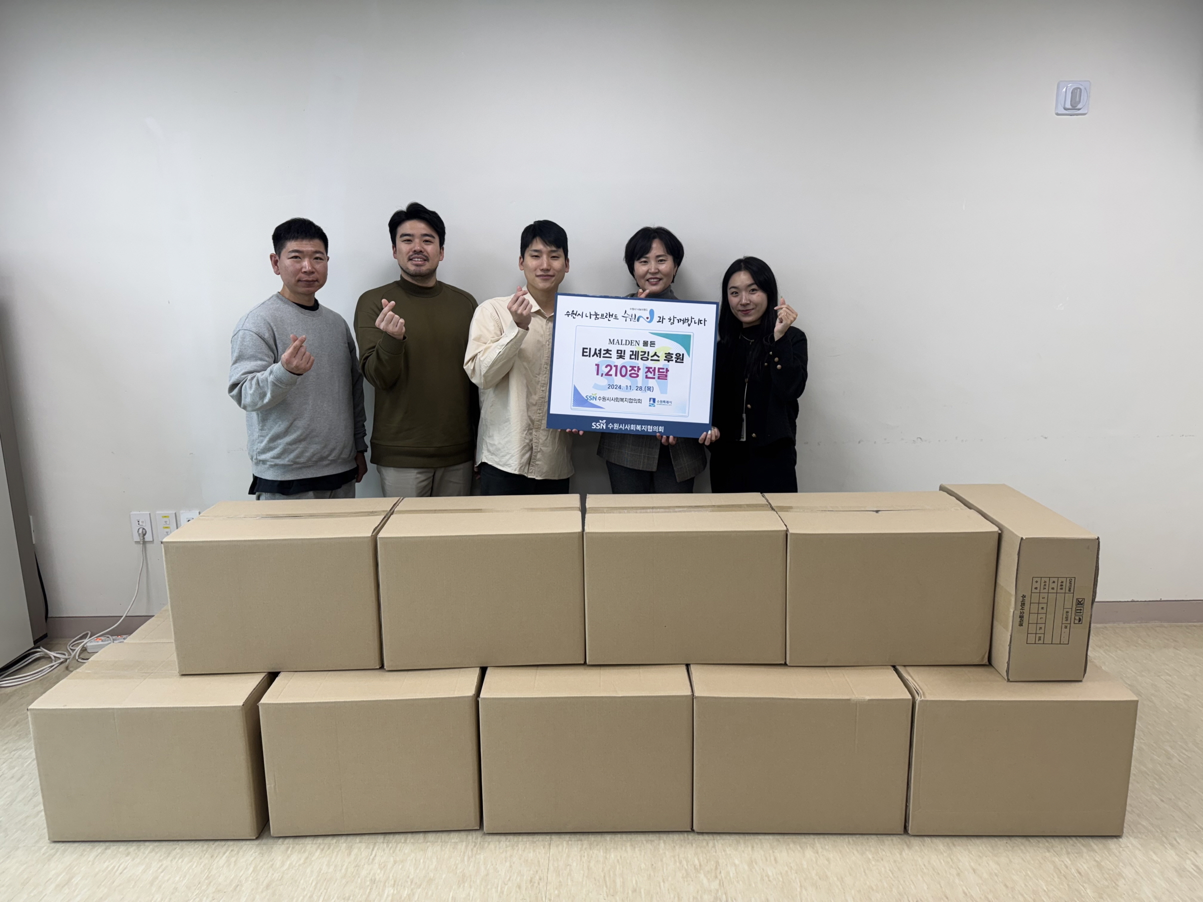 웨어(운동복) 브랜드 몰든(MALDEN)이 “어려운 이웃들에게 전달해달라”며 1700만원 상당의 의류(티셔츠, 레깅스 등 1200여 벌)를 수원시에 기부했다. 전달식은 28일 수원시사회복지협의회 사무실에서 열렸습니다.