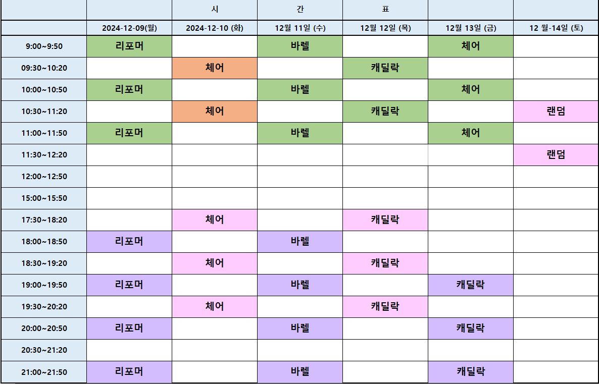건강교육생활스포츠 12월9일부터~12월14일수업시간표!! By 여정은 기자 - 2024년 12월 10일 0 7 Facebook Twitter Pinterest WhatsApp 12월 12일 9시30분수업은 정혜정강사님이 진행해주십니다. 캐딜락수업으로 진행하겠습니다. 샤인핏필라테스는 4기구를 그룹수업에서 진행합니다. 바렐.체어.캐딜락.리포머로 4기구를 사용합니다. 거기에 소도구를 이용해서 재미있게 수업을 진행하고 있습니다. 언제든지 상담예약해주시면 친절하게 자세한상담 해드리니 언제든지 연락주세요~