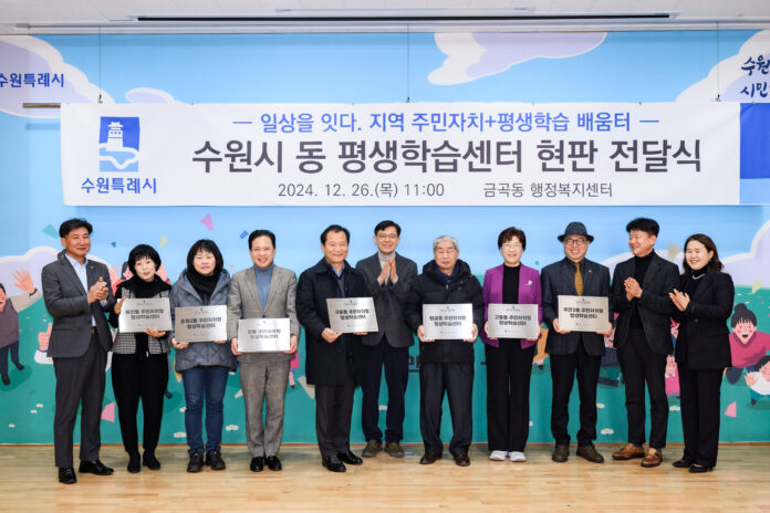 수원시는 26일 금곡동행정복지센터에서 평생학습센터 제막식을 열고, 시범운영 동에 현판을 전달했다. 제막식에는 현근택 수원시 제2부시장, 김종석 권선구청장, 참여 동 주민자치회 관계자 등이 참석했습니다.